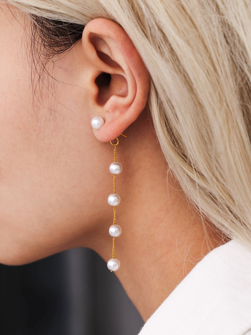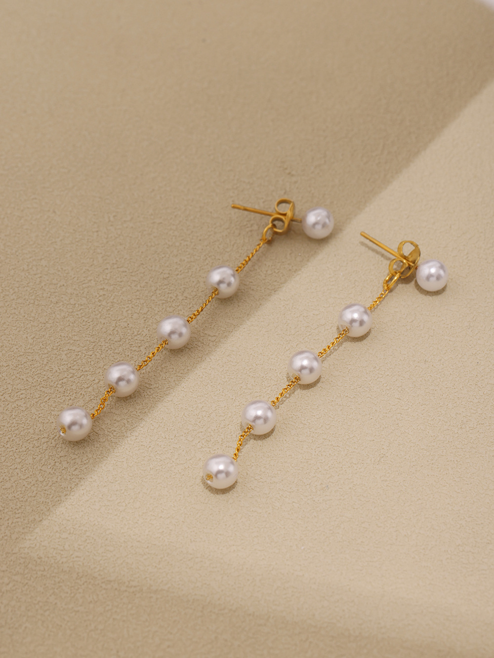 Stainless Steel Long Fringe Shell Pearl Earrings