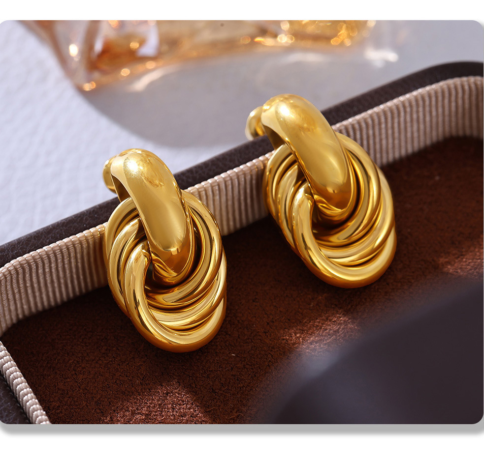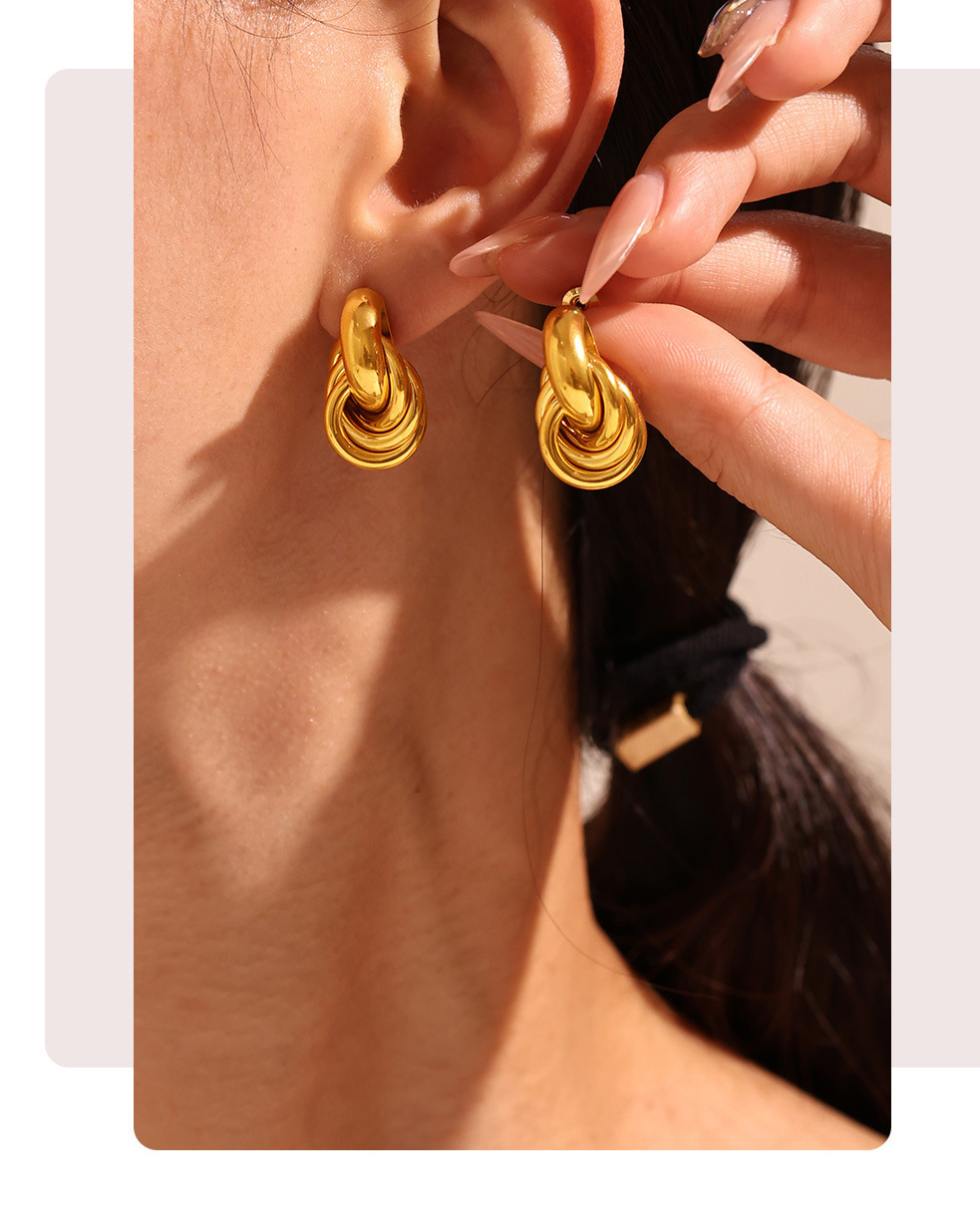 Stainless Steel Wire-Wrapped Circle Stud Earrings