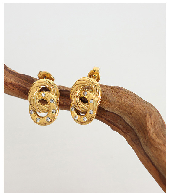 Titanium Steel Double Hoop Crystal Earrings