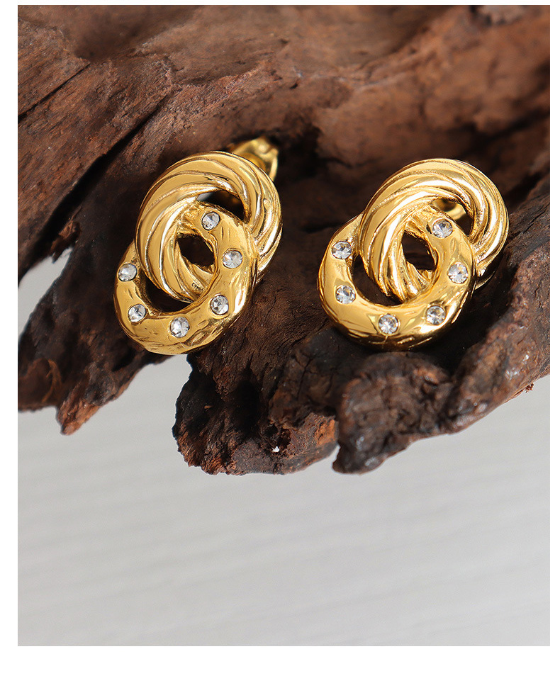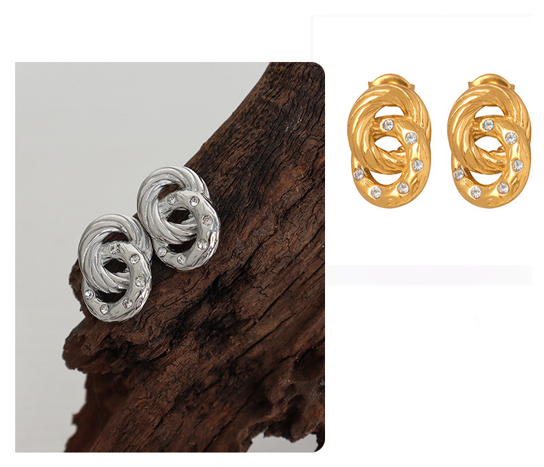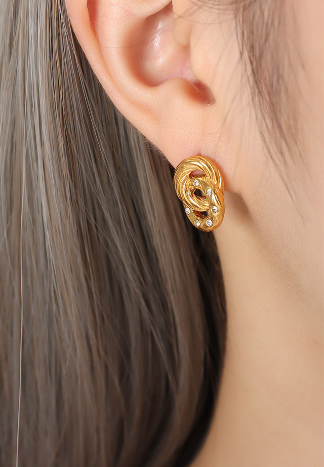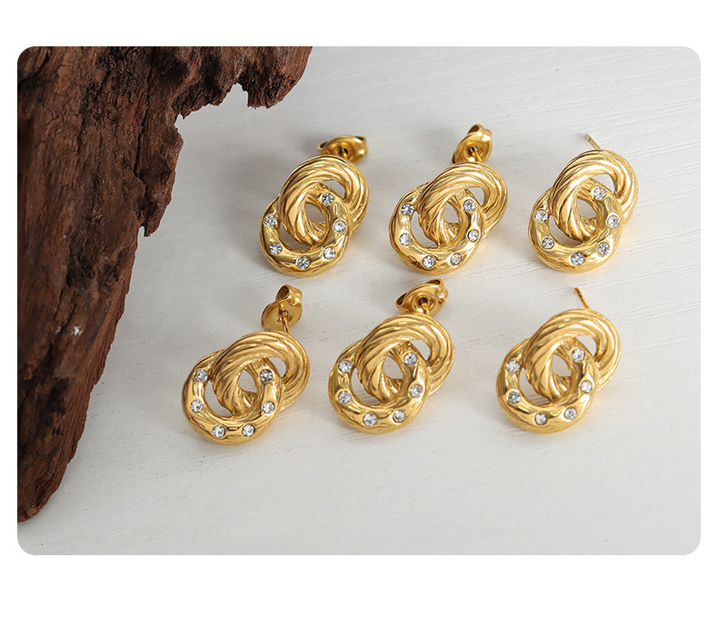 Titanium Steel Double Hoop Crystal Earrings