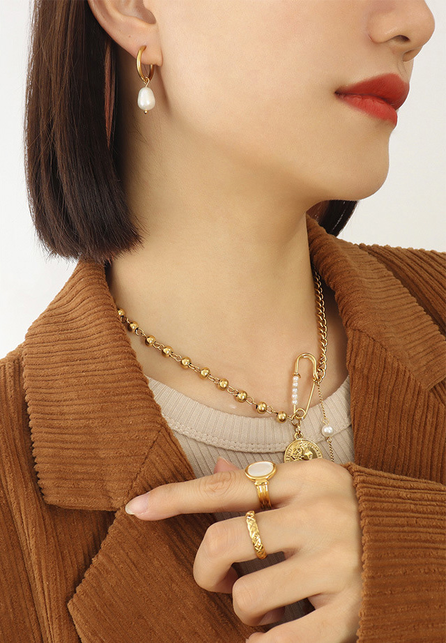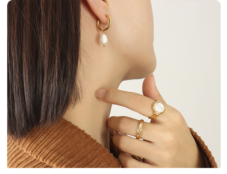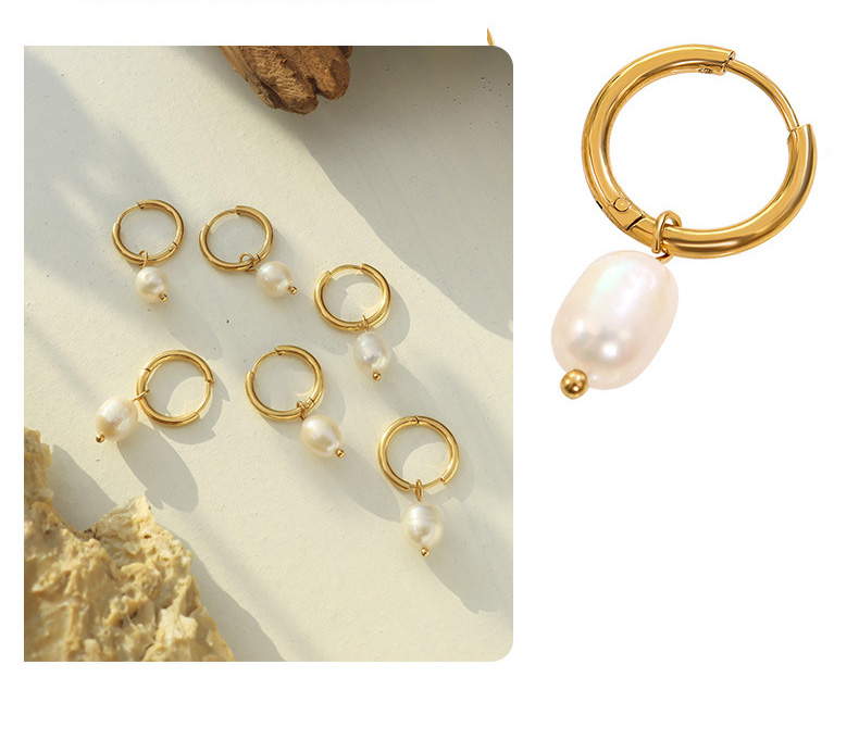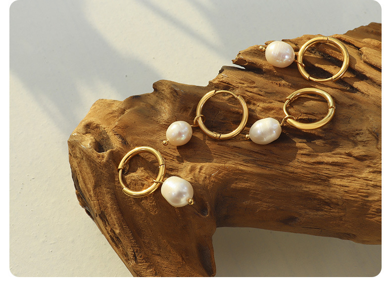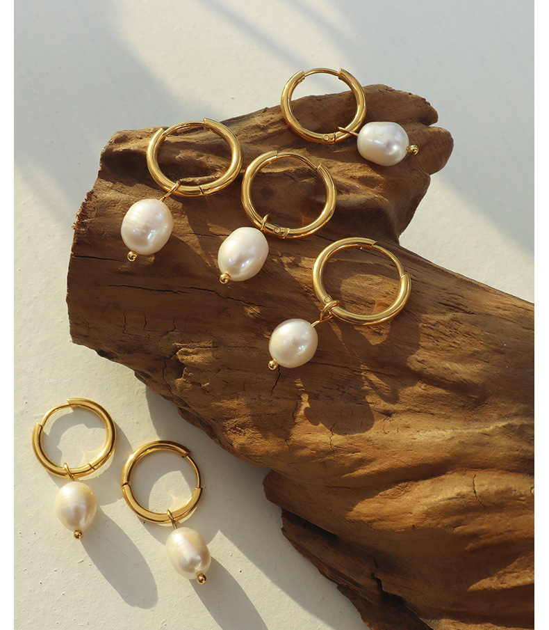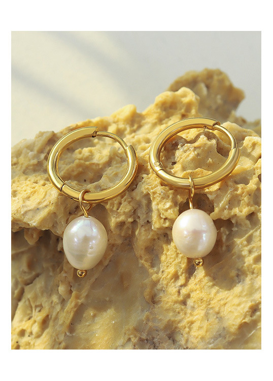 Titanium Steel Freshwater Pearl Hoop Earrings
