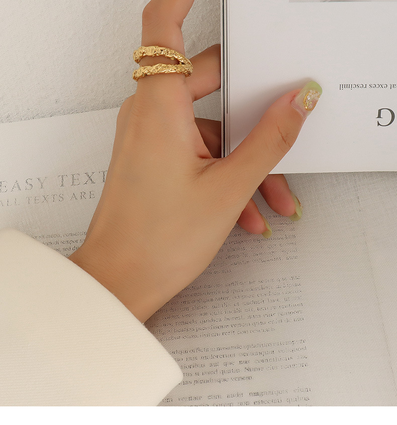 Titanium Steel Hammered Foil Texture Double-Layer Ring
