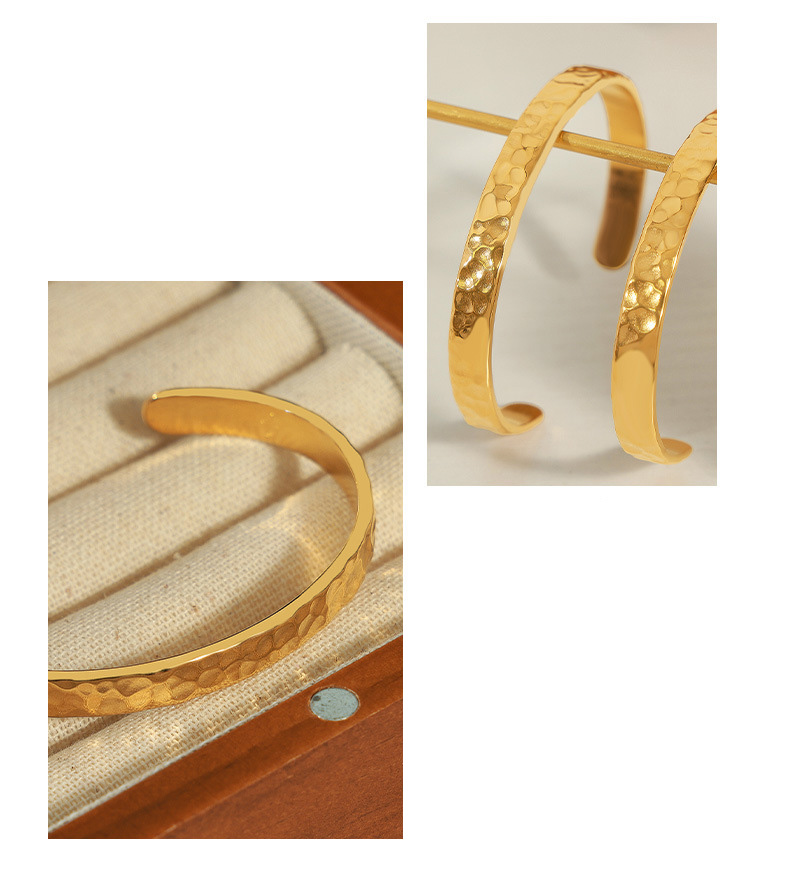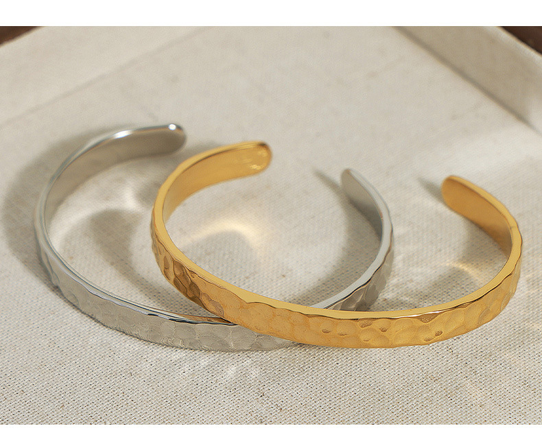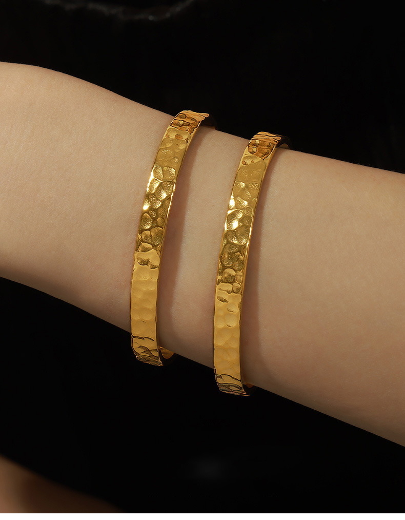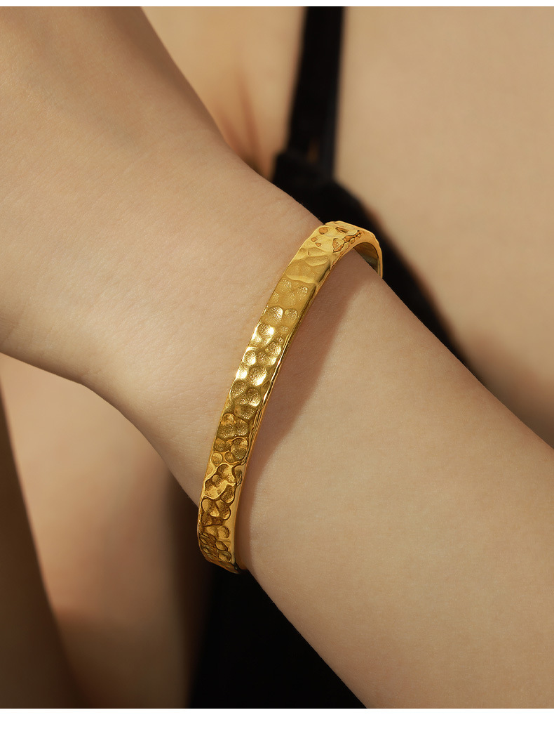 Titanium Steel Minimalist Textured Hammered Finish Open Bangle